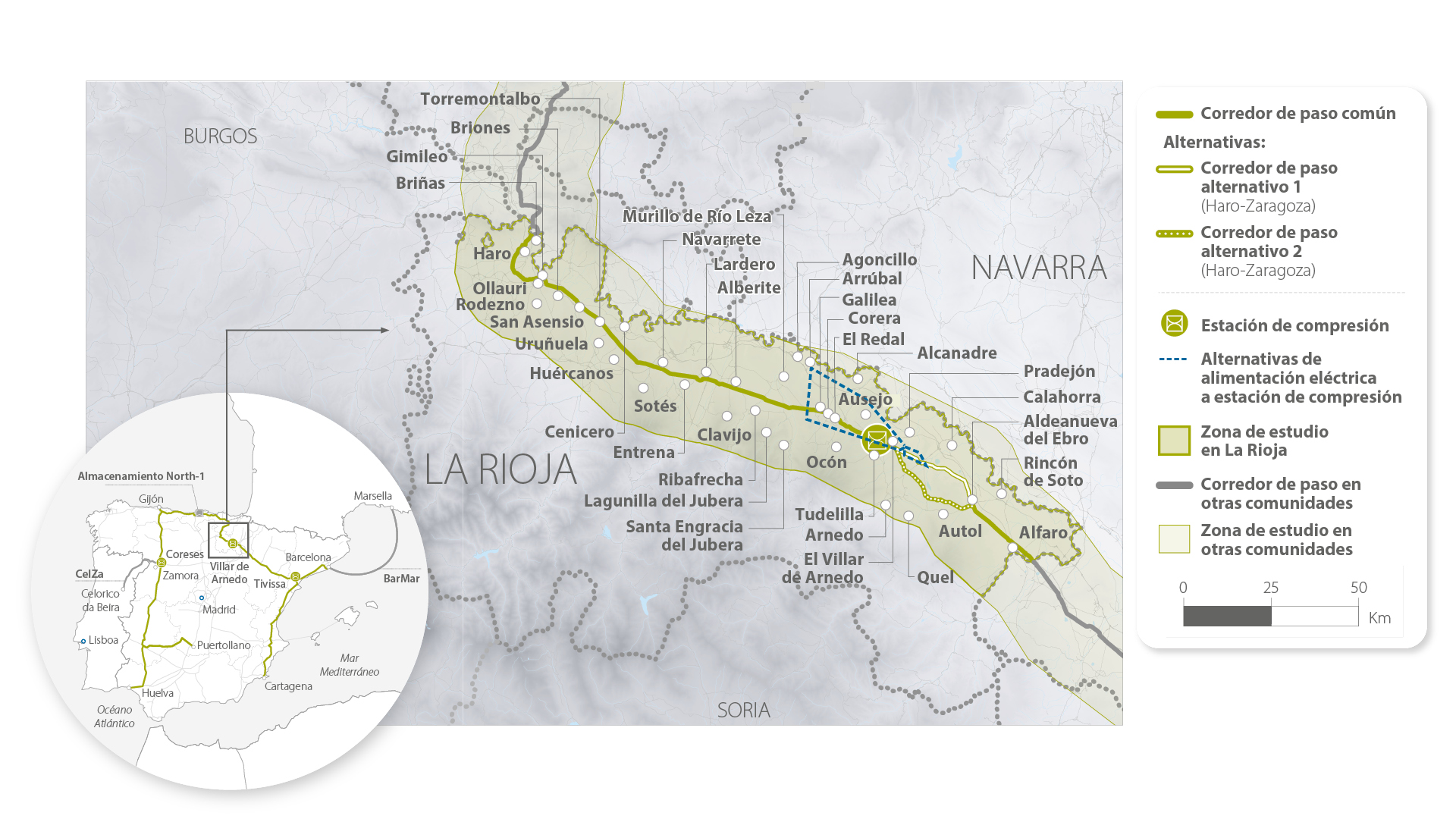 Preliminary studies for the project estimate about three compressor stations located in Coreses (Zamora), Tivissa (Tarragona) and Villar de Arnedo (La Rioja).