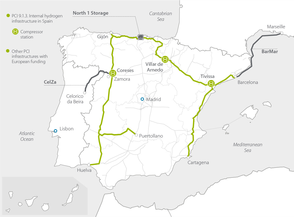- It will allow surplus production to be exported to Europe, acting as a facilitator of the H2med corridor, which will connect the Iberian Peninsula with North Western Europe.